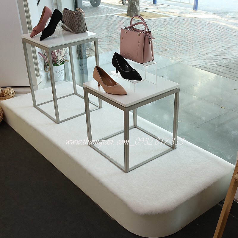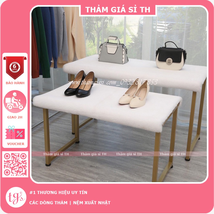 Thảm lông thỏ trắng lông mịn mềm rất thích hợp trải lót tủ , kệ trưng bày sản phẩm như quần áo, điện thoại, dày dép, túi xách...Đặc biệt phù hợp với các sản phẩm nhỏ lông thỏ mềm sợi mịn sẽ không bị che khuất sản phẩm