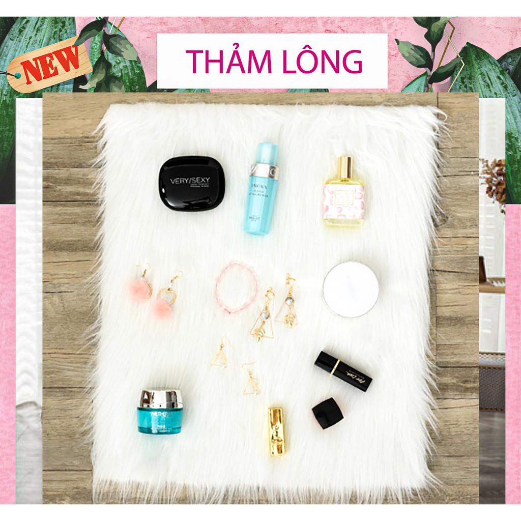 Thảm lông trắng trải sàn, thảm trải phòng phụ kiện chụp hình sản phẩm trang trí kích thước 1m x 80cm