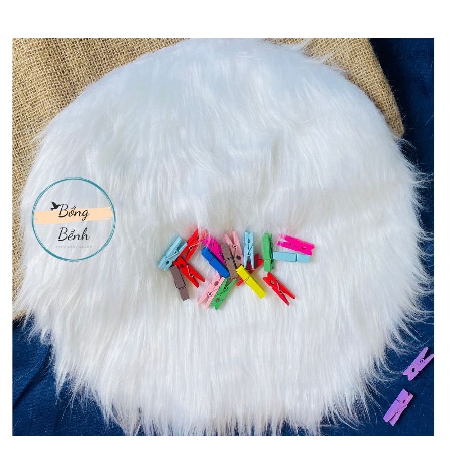Thảm Lông Trắng Tròn Chụp Ảnh Lông Dài có 2 kích thước : Đường kính 75-80cm ( Tùy thời điểm sẽ giao động nhau 1-3cm )