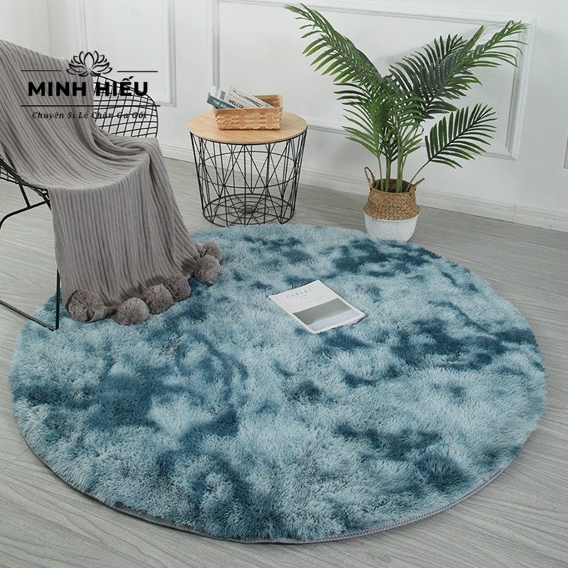 Thảm lông tròn chụp ảnh decor, thảm lông loang tròn trải sàn trang trí đường kính 1m
