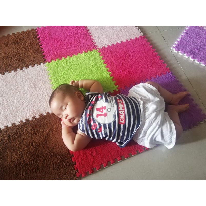 Giới thiệu Thảm Lông Xốp Ghép 30x30x1cm, Giúp Bé Tập Lẫy Không Chấn Thương Đầu