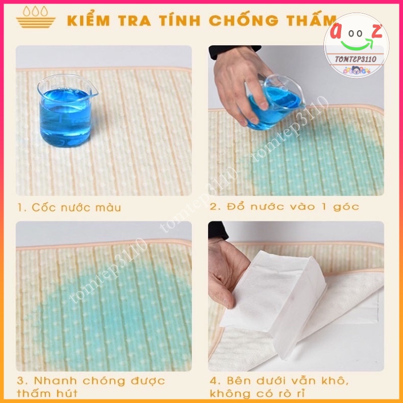 👉 Mẹ lưu ý không để bé nằm gần viền 4 cạnh của tấm lót để tránh nước thấm vào viền và thấm ngược vào mặt sau.