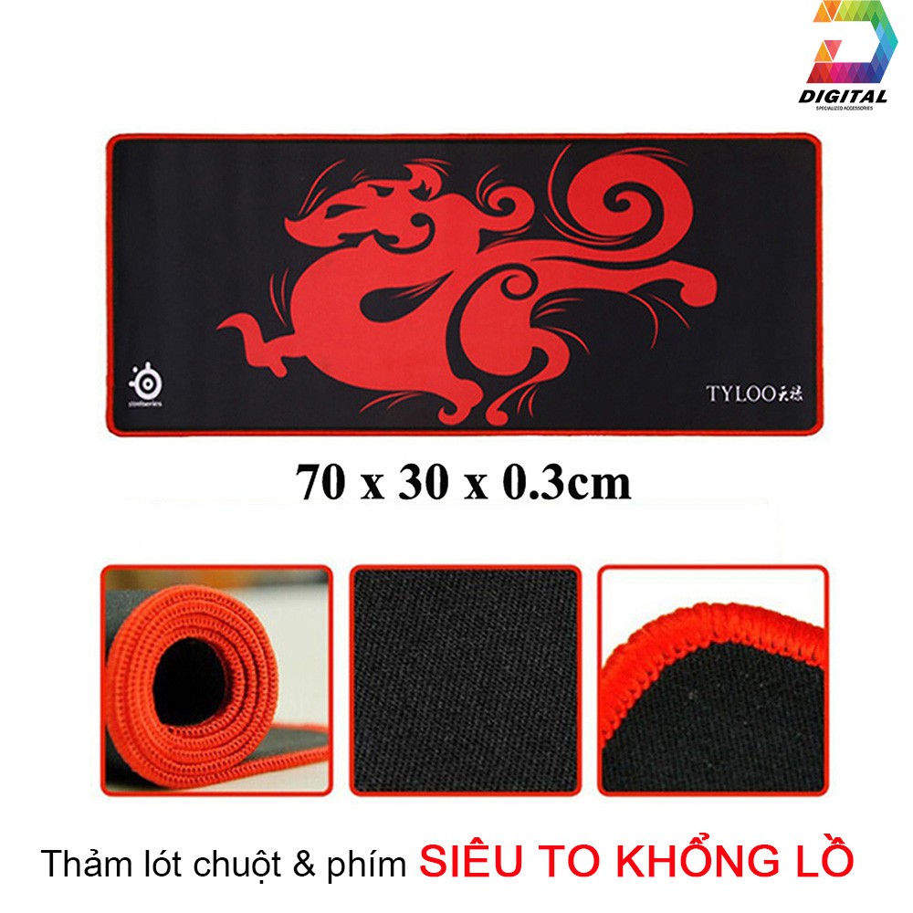 - Thảm lót chuột Tyloo siêu khủng, kích cỡ 70x30cm. Độ dày 3mm.