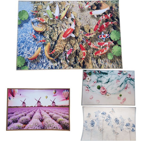 – Thảm 3D lót sàn chống trượt nhiều họa tiết được làm từ chất liệu vải nhung với đặc tính siêu thấm hút nước và bụi bẩn, giữ nhà cửa luôn khô ráo, sạch sẽ.
