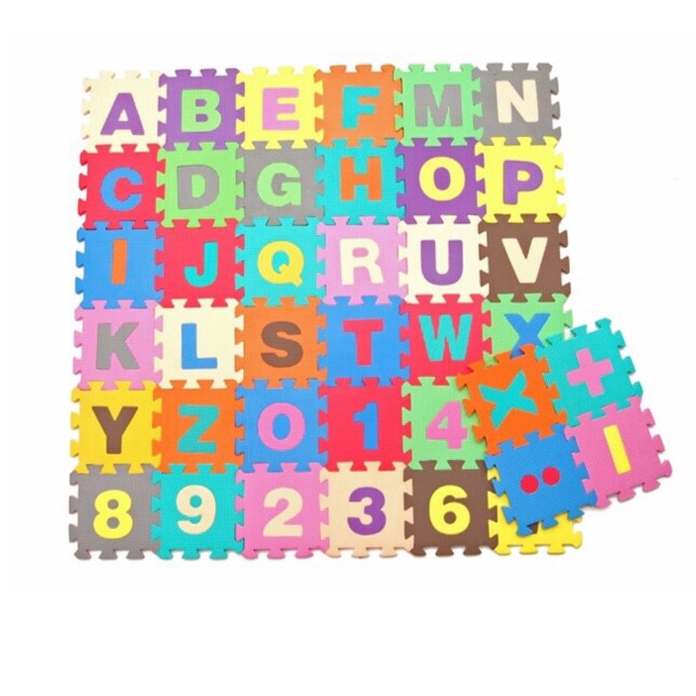 01 bộ gồm 40 miếng: 26 chữ cái, 10 số từ 0 đến 9 và 4 phép tính (+, -, x, : )