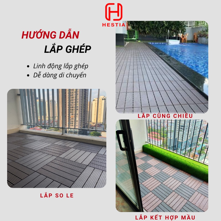 + Kích thước vỉ nhựa tiêu chuẩn 30cm x 30cm nhưng độ dầy được cải thiện còn 1cm phù hợp hầu hết với của ban công mà không lo chạm cửa khi đóng mở