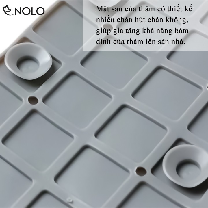 Mặt sau của thảm có thiết kế nhiều chân hút chân không, giúp gia tăng khả năng bám dính của thảm lên sàn nhà.