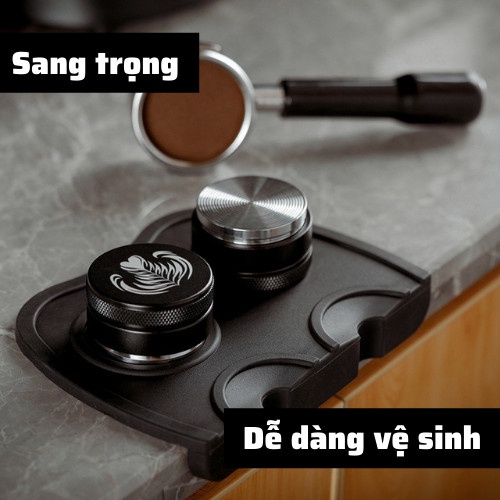 -Tamping mat tạo ra một bề mặt êm ái và đàn hồi giúp lực nén của bạn trải đều lên cafe khi ghì tay xuống.