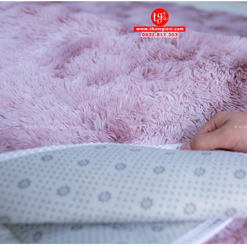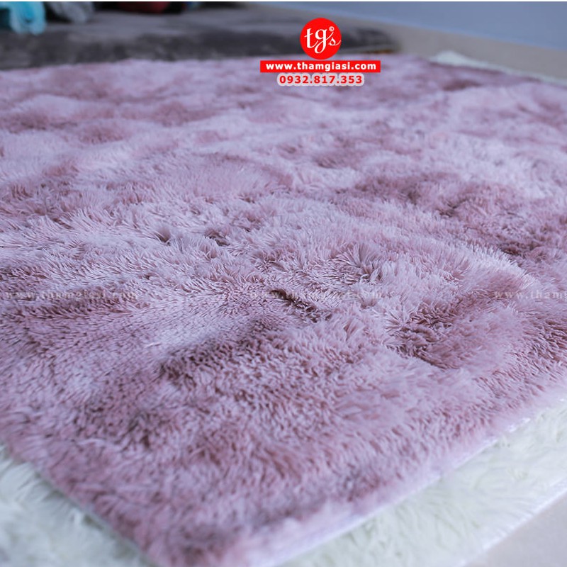 Thảm lót sofa trang trí phòng khách, phòng ngủ lông xù loang màu hồng đất