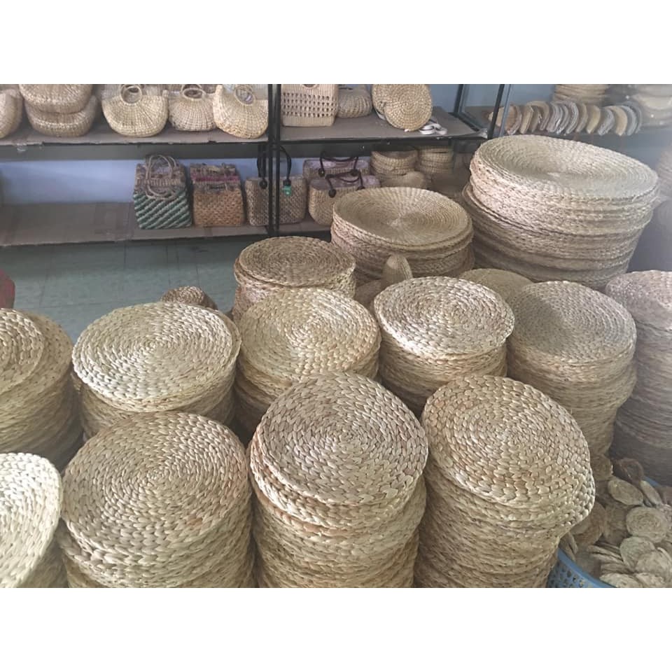 Thảm tròn bằng lục bình tự nhiên thích hợp trang trí bàn ăn, lót nồi, thảm lót sàn, tùy theo kích thước, sản xuất thủ công tại Đồng ThápCách bảo quản và sử dụng: