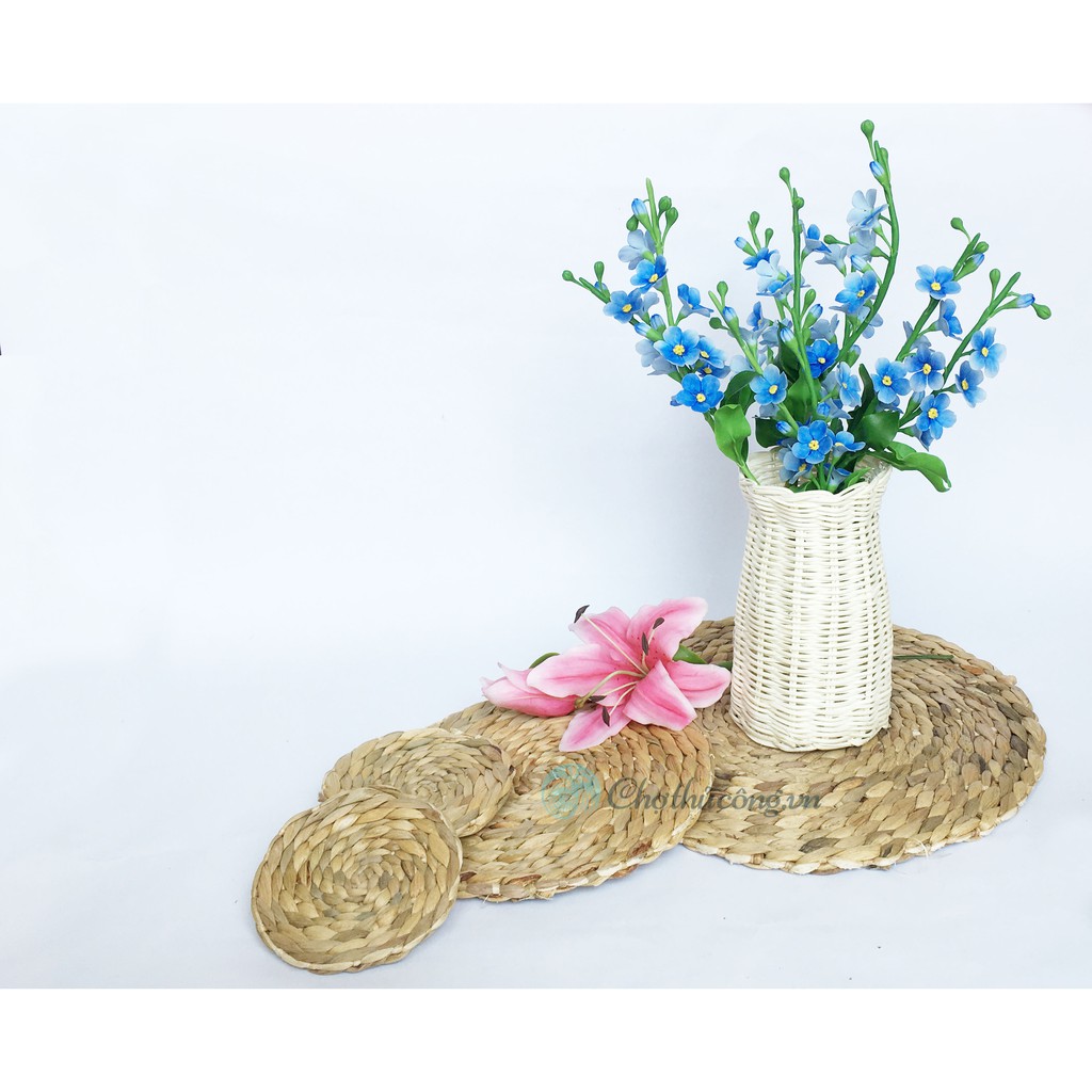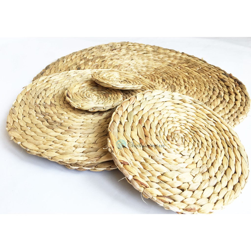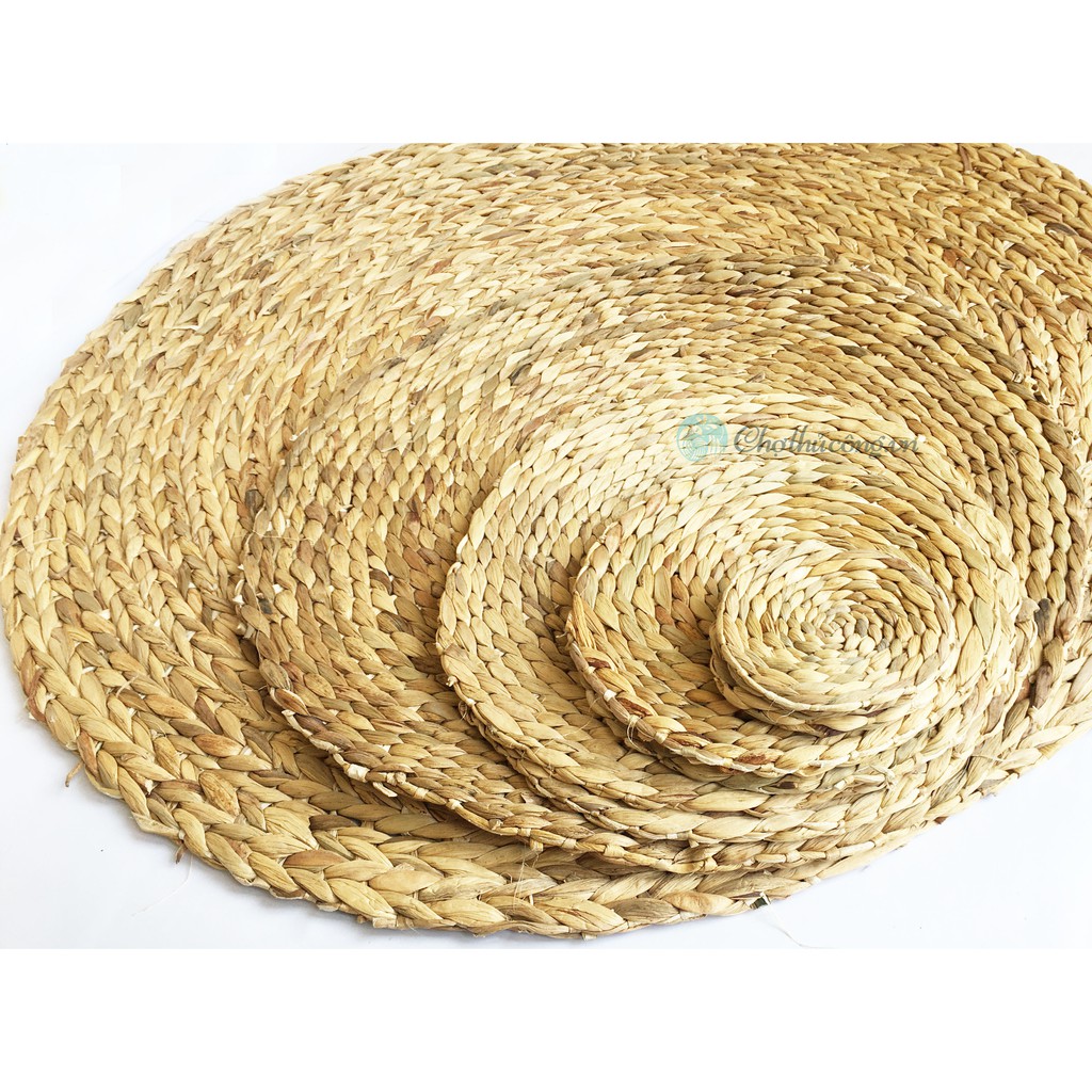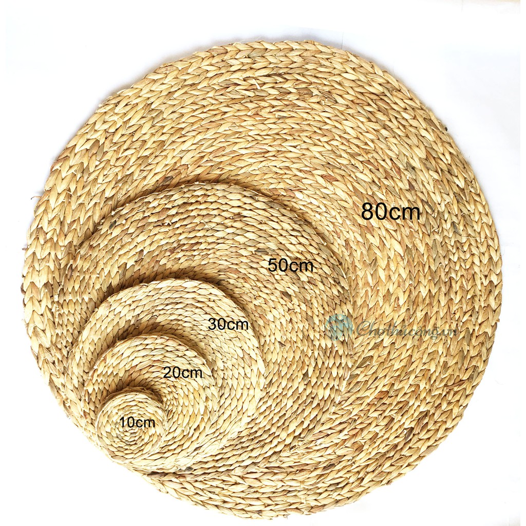 Thảm lục bình tròn tấm lót đan bằng bèo hay lục bình tự nhiên 100% BVMT KT 10, 20, 30, 50cm làm lót ly chén nồi, thảm, decor vintage, phụ kiện chụp ảnhThảm lục bình hình tròn được đan thủ công tỉ mỉ tại làng nghề Việt Nam, đã qua xử lý nấm mốc, mối mọt.