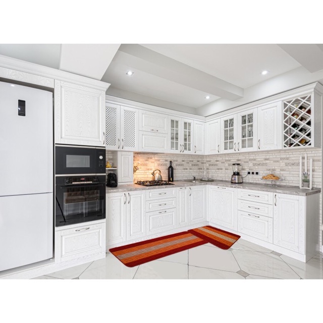 -Về thiết kế, thảm có tính thẩm mỹ cao với màu sắc và hoa văn nhã nhặn tương thích với không gian của phòng bếp
