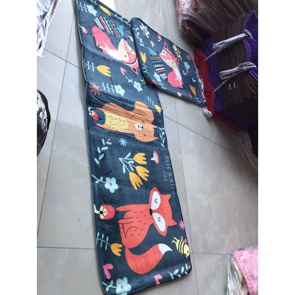 - Thảm được làm từ chất liệu cotton cao cấp có tác dụng thấm nước. Với kiểu họa tiết 3D sống động, đẹp mắt set thảm này còn giúp không gian nhà bạn trở nên sinh động, đẹp mắt và sang trọng hơn.
