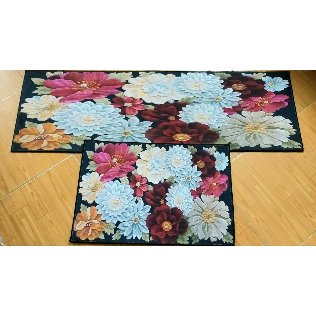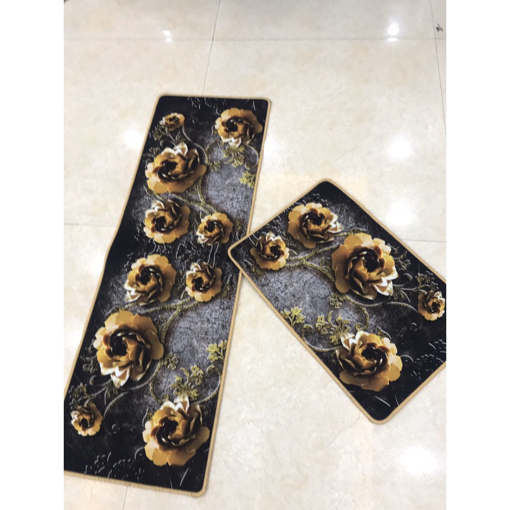 - Set gồm 2 thảm chữ nhật dài và ngắn phù hợp để trong phòng bếp hoặc phòng ngủ rất sang trọng.In họa tiết 3D sống động, đẹp mắt cho không gian sống.