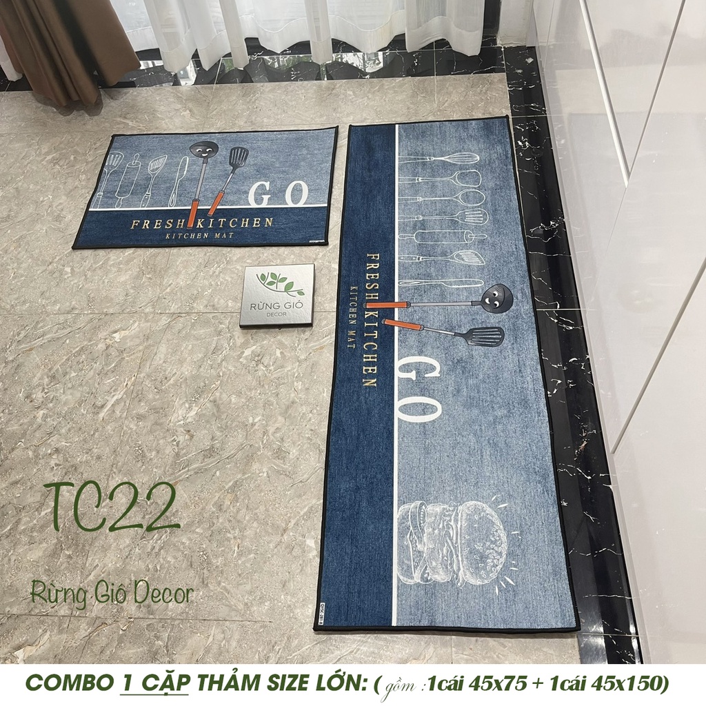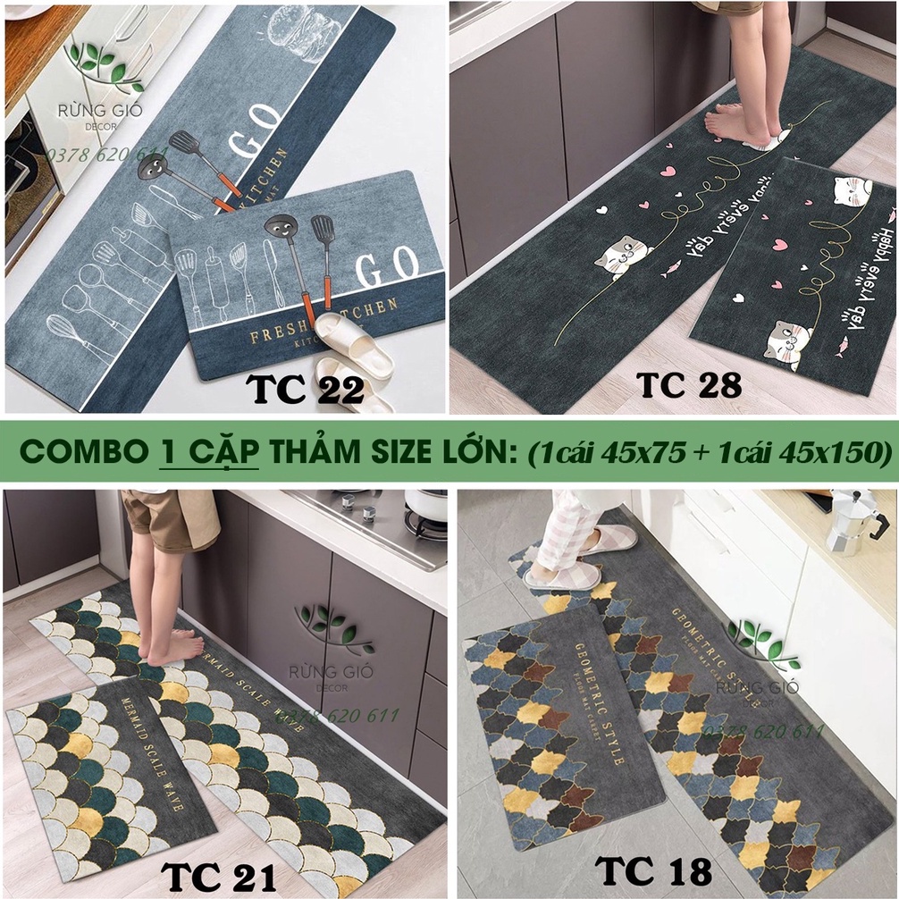 THẢM NHÀ BẾP DẠ ÉP 1 Cặp Size To (45*75+45*150cm) THẤM HÚT NƯỚC, CHỐNG TRƠN TRƯỢT, GIÁ BÁN CHO 1 CẶP THẢM