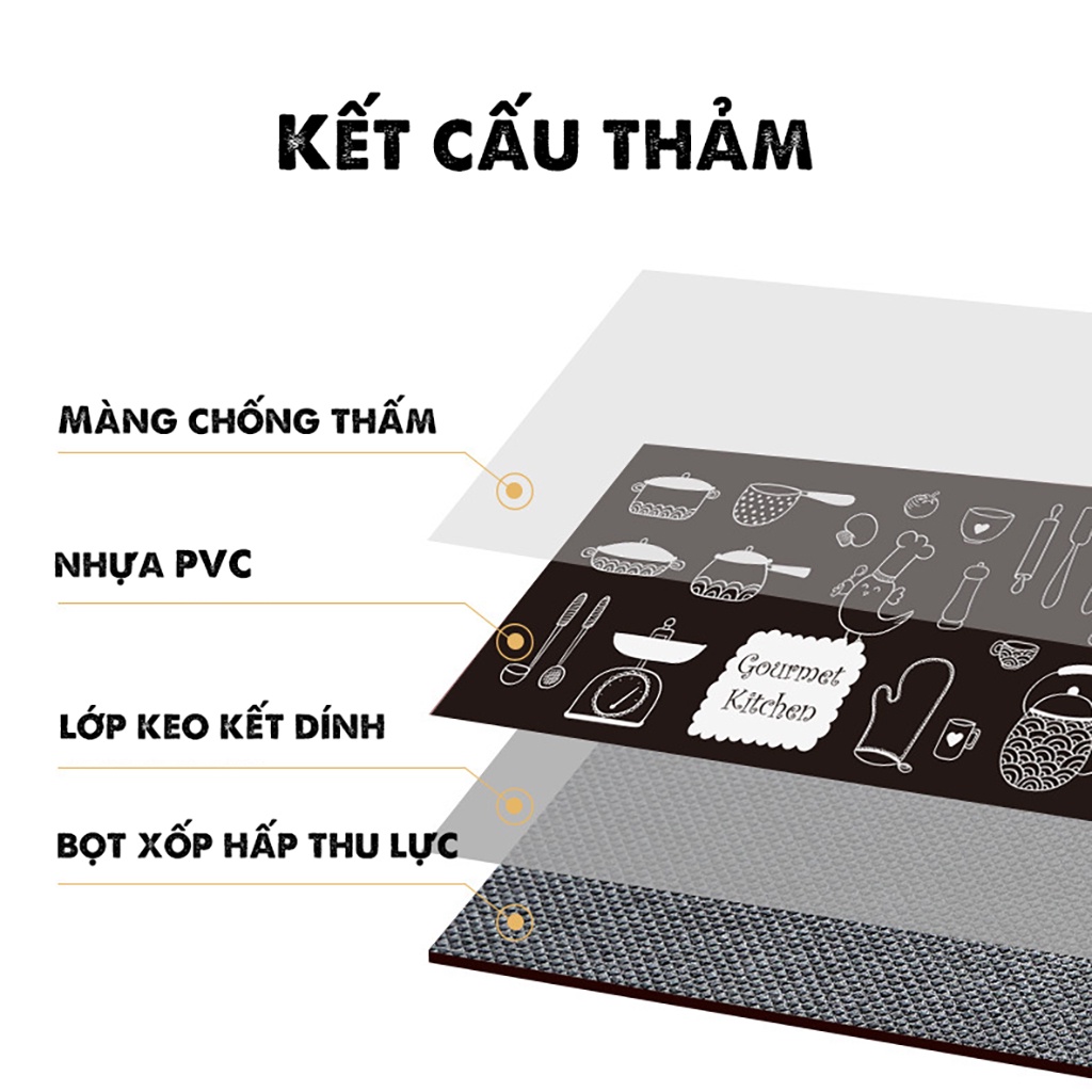 Thảm Nhà Bếp Trải Sàn dạng Da PU Cao Cấp Chống Mỏi Gót Chân Chống Thấm Nước Dễ Lau Chùi Hạn Chế Bể Vỡ Đồ Đạc TNB01