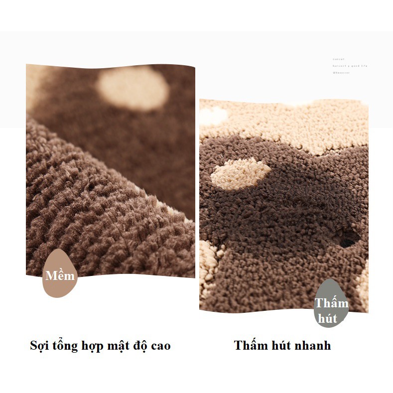 * Mềm mại, có khả năng hút bụi, thấm nước tốt, giặt nhanh khô, độ bền cao hơn nhiều so với những thảm thông thường.