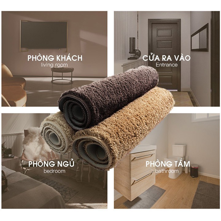 - Bề mặt thảm chùi chân mềm mại do thảm được làm từ sợi len, có khả năng hút bụi và thấm nước tốt, dùng được cho nhà tắm, thảm phòng khách, phòng ngủ, văn phòng công ty, xe hơi