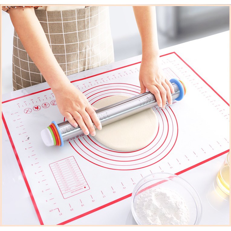 Nhà cửa & Đời sống > Dụng cụ nhà bếp > Dụng cụ nướng & trang trí bánh || Thảm nhào bột silicon, tấm lót cán bột sợi thuỷ tinh cho làm bánh mì, bao... chống trượt, chống dínhCòn hàng