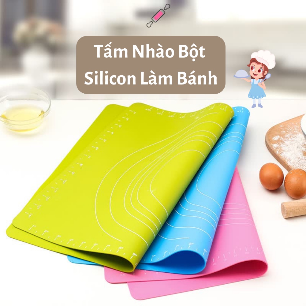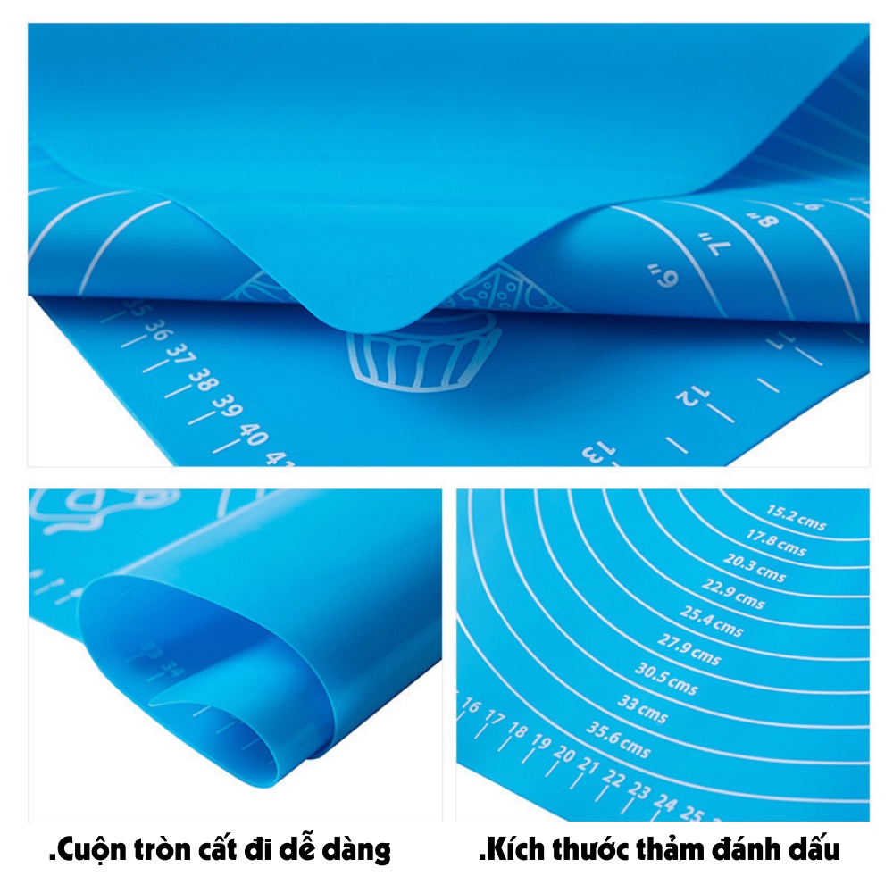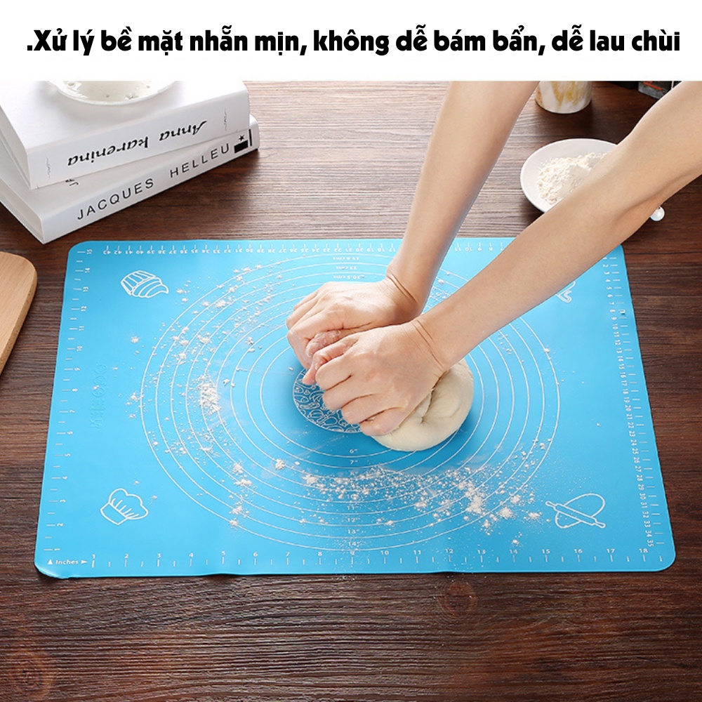 Tấm thảm lót nhào bột, trộn bột silicon chống dính, trượt làm bánh sữa chua, bao, quy, gạo, trân châu ... baking 50x40cmKhả năng chống dính cao bạn hoàn toàn có thể an tâm không phải bực mình, lãng phí bột