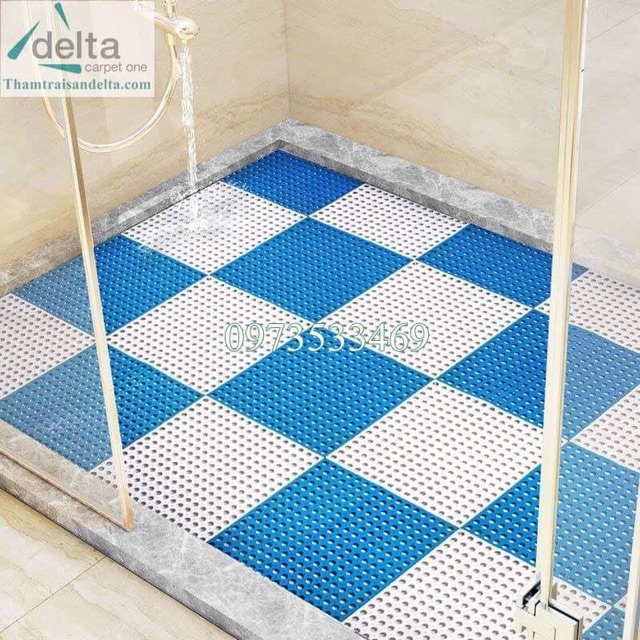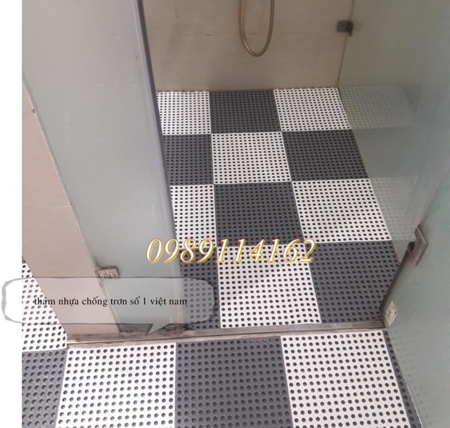 Thảm nhựa ghép chống trơn có kích thước 30*30cm độ dày cả phần đế là 9mm , thảm thoát nước nhanh chống trơn cực an toàn 🙂