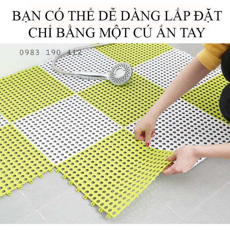Tấm Thảm Nhựa Ghép Kháng Khuẩn 3T - Loại Thảm Nhựa Lỗ Lót Sàn Chống Trơn Trượt Nhà Vệ Sinh