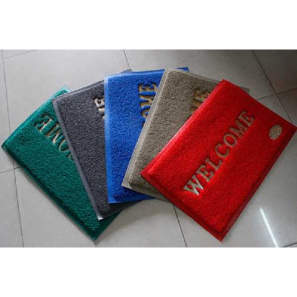 Mẫu thảm chùi chân welcome với chất liệu là nhựa cao su thiên nhiên có khả năng chống nước và chịu nhiệt. Do đó thường được dùng để ngoài trời hay trước cửa ra vào các nhà máy hay công ty.Sản phẩm này có mặt trên là các sợi cao su nhỏ được đan vào nhau và mặt đế là một khối đặc nhằm tăng độ bám hay độ hít xuống mặt sàn mà không cần sử dụng keo dán.