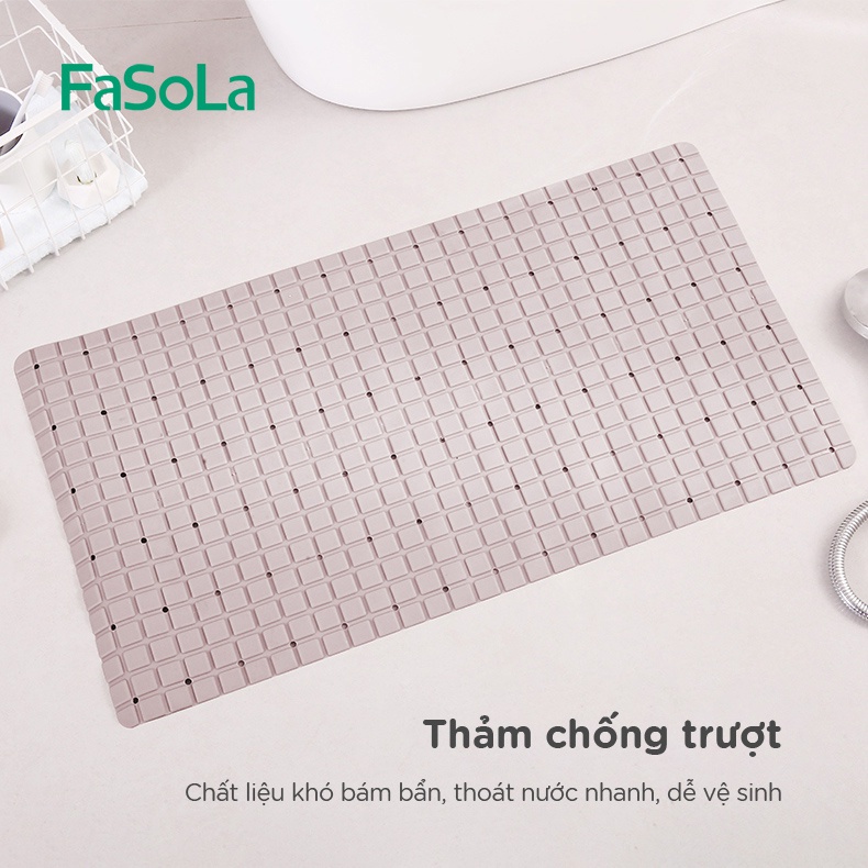 Thương chào các bạn đến với thương hiệu “FASOLA - Hàng gia dụng phong cách Nhật Bản”Tên Sản phẩm: Thảm nhựa lót phòng tắm chống trượt