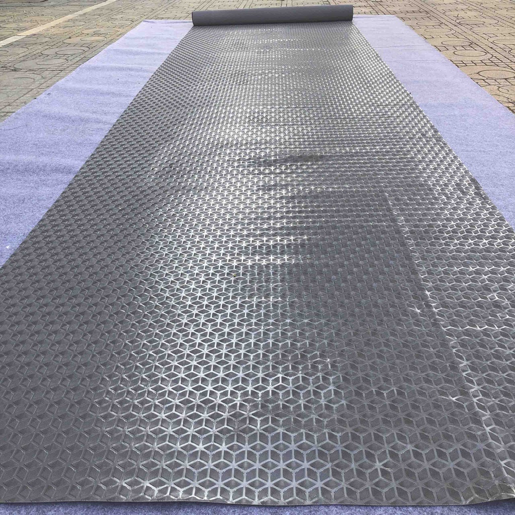- Kiểu dáng: Thảm nhựa trải sàn chống trơn, lót sàn nhà dạng cuộn, mặt thảm nổi hoa văn cánh quạt tròn