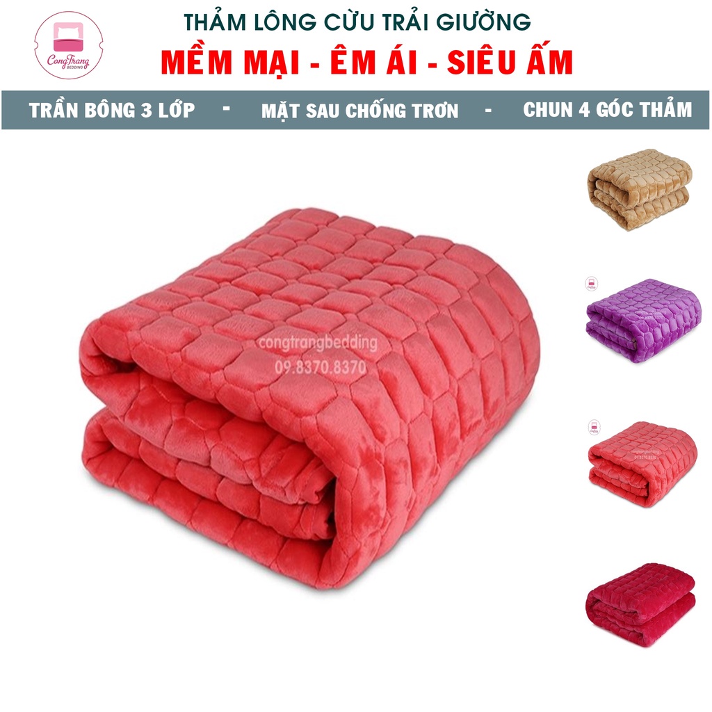 Thảm nỉ nhung trải giường 3 lớp cực ấm đủ kích thước 4 màu (Chất Liệu Bông Trắng - Giặt Máy Thoải Mái)- Kích thước : Có đủ các kích thước vừa với giường hiện nay (1m2x1m9, 1m5x1m9 , 1m6x2m, 1m8x2m và 2mx2m2)