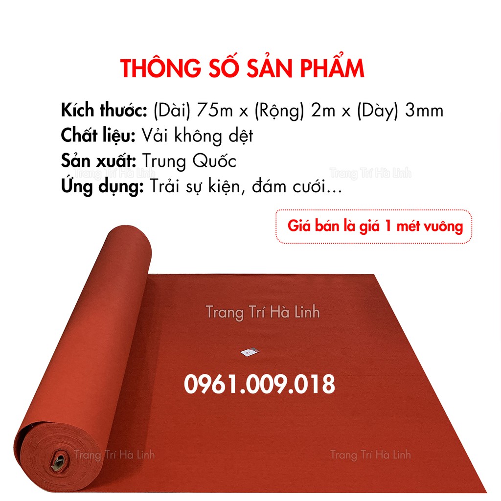 Thảm nỉ đỏ trải sàn , thảm nỉ sự kiện giá rẻ dạng cuộn* Thông số sản phẩm thảm nỉ đỏ trải sàn