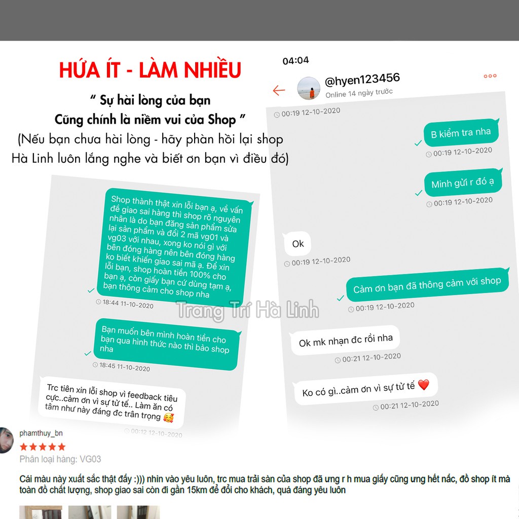 Shop luôn cầu thị đón nhận mọi ý kiến của khách hàng để nâng cao chất lượng sản phẩm, dịch vụ