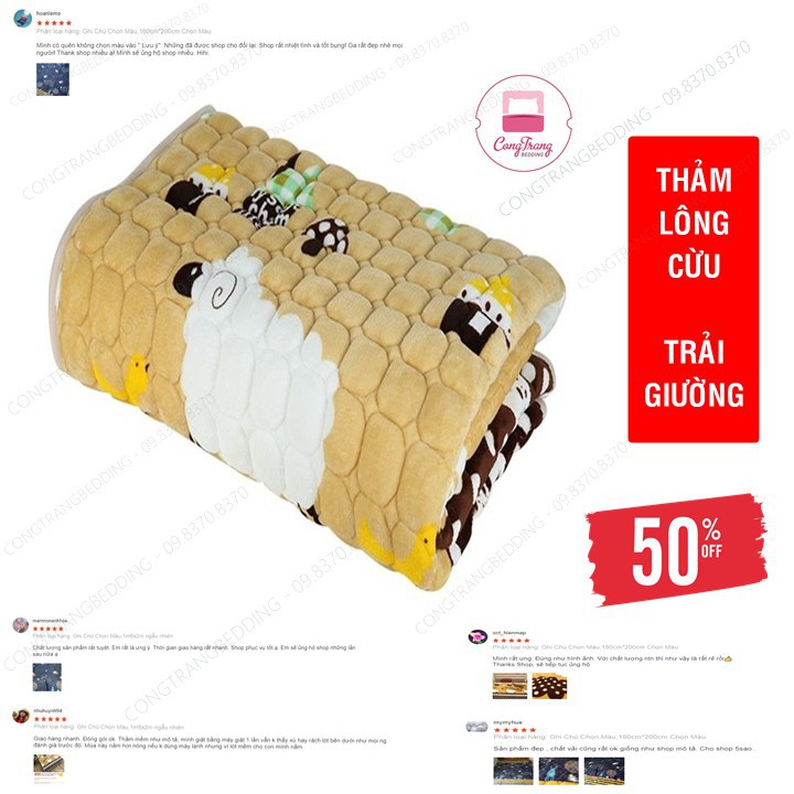 Thảm nỉ nhung, Thảm lông cừu, thảm trải giường 3 lớp cực ấm đủ kích thước (Chất Liệu Bông Trắng - Giặt Máy Thoải Mái)