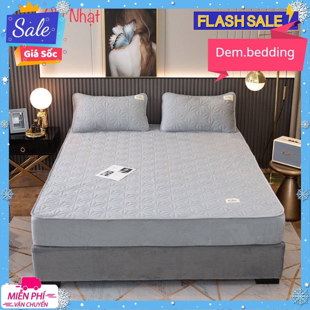 Nhà cửa & Đời sống > Chăn ga gối nệm > Tấm bảo vệ nệm, topper || Thảm Nỉ Nhung Trần Trám Pha Lê 3 Lớp[gồm 1 ga 2 vỏ gối nằm]Còn hàng