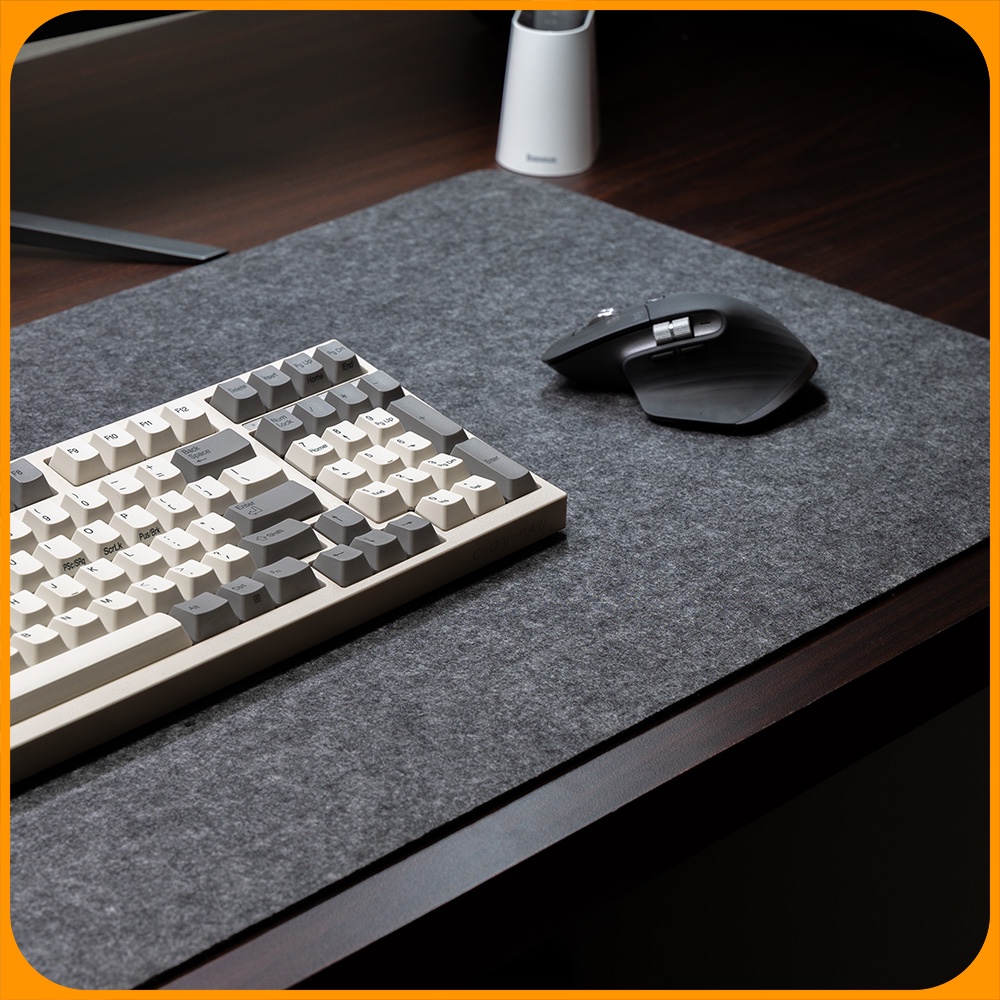 - Thảm to, kín bàn, khiến tông màu bàn trở nên liền mạch, dễ dàng setup các phụ kiện bàn làm việc khác.