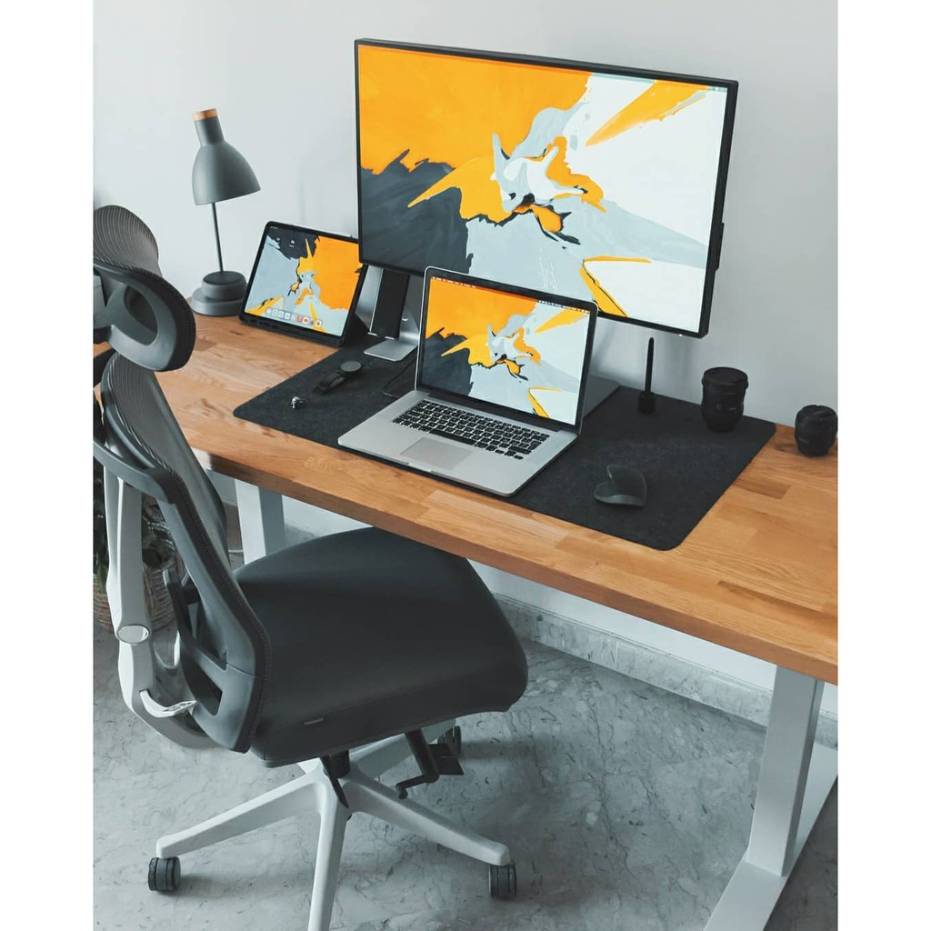 - Thảm to, kín bàn, kiến tông màu bàn trở nên liền mạch, dễ dàng setup các phụ kiện bàn làm việc khác.