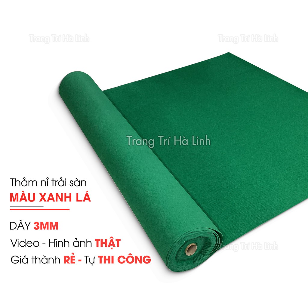 Giới thiệu Thảm nỉ trải lót sàn nhà màu xanh lá cho văn phòng sự kiện giá rẻ dày 3mm