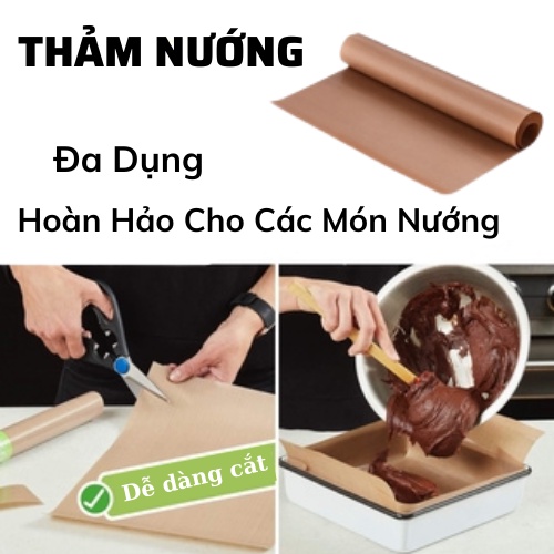 - Có thể dễ dàng cắt Thảm nướng bánh chống dính bằng vải để phù hợp với khuôn đã có sẵn như: khuôn tròn, khuôn chữ nhật, khuôn chống dính,...