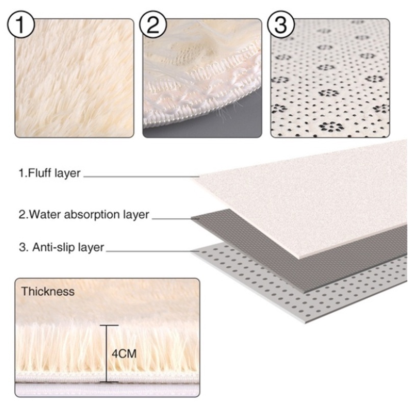 Được thiết kế thông minh với 2 lớp, một lớp trên bằng lông mềm mịn, không gây dính bết khi bị bẩn giống các loại thảm khác, và dễ dàng vệ sinh, khi giặt nhanh khô
