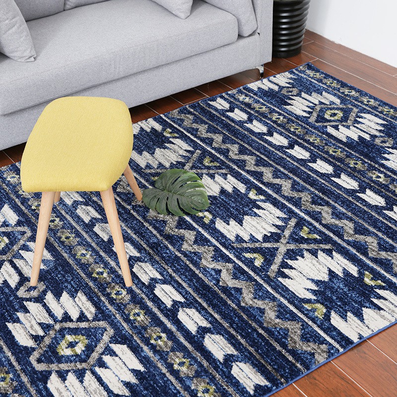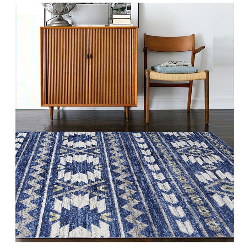 Thảm Phòng Khách Thổ Nhĩ Kỳ Thảm Lông Sợi Ngắn Thổ Cẩm Xanh Dương