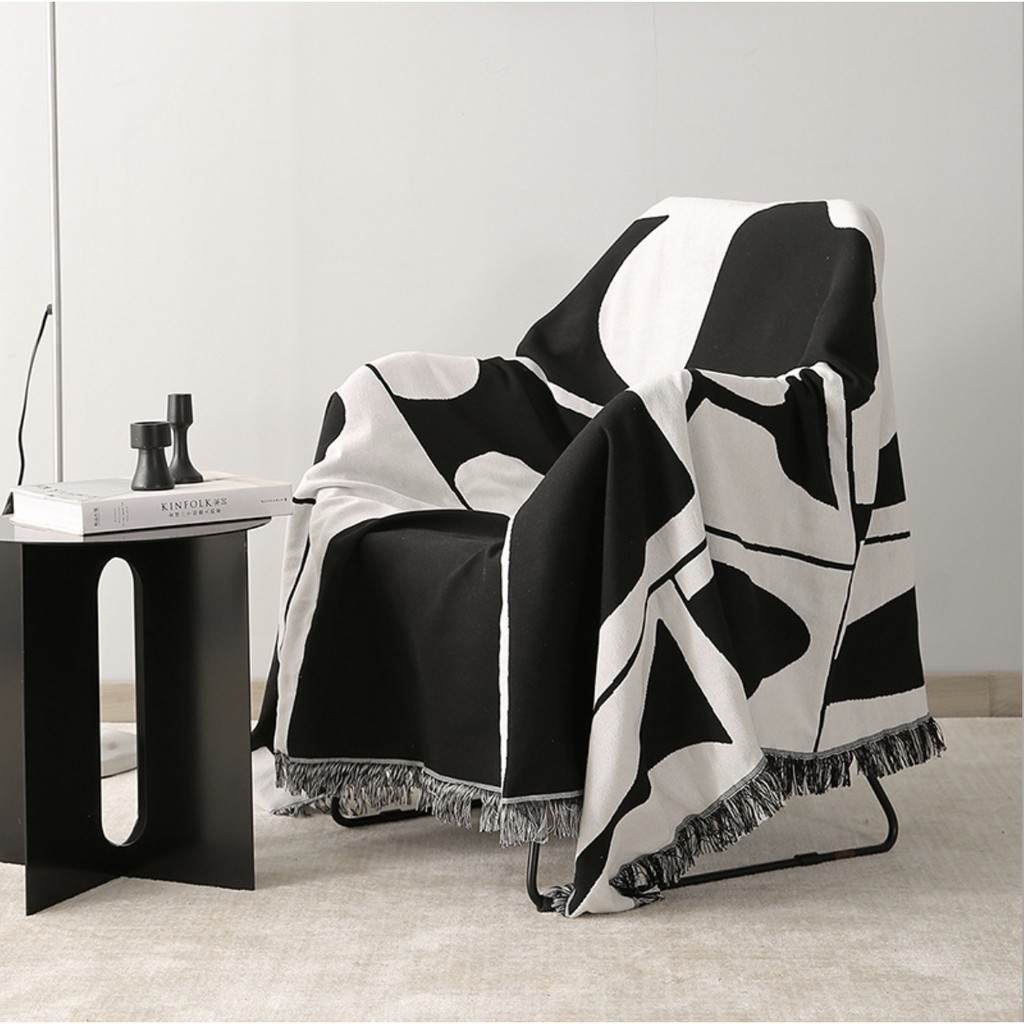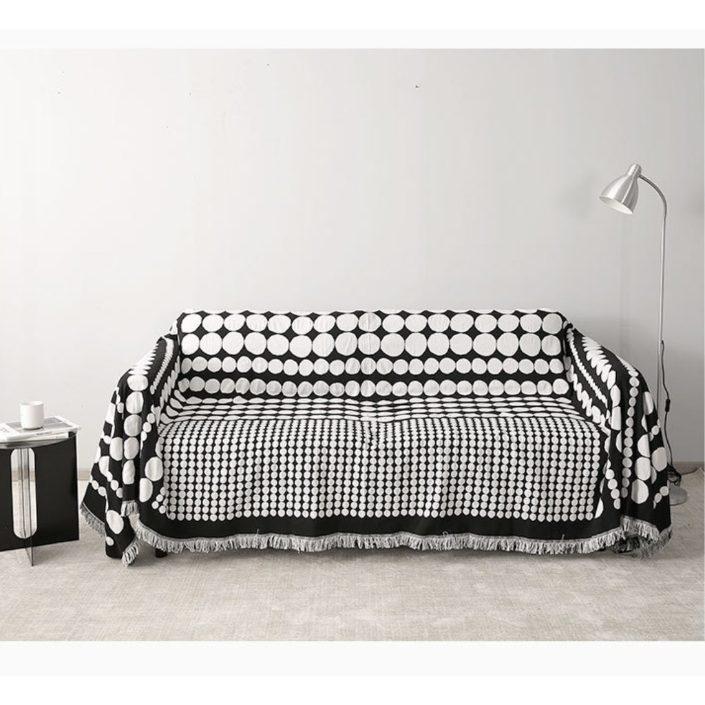 Nhà cửa & Đời sống > Trang trí nhà cửa > Vỏ bọc nội thất || Thảm phủ ghế sofa 1.8x2.3m tông trắng đen (100% cotton, dùng 2 mặt)Còn hàng