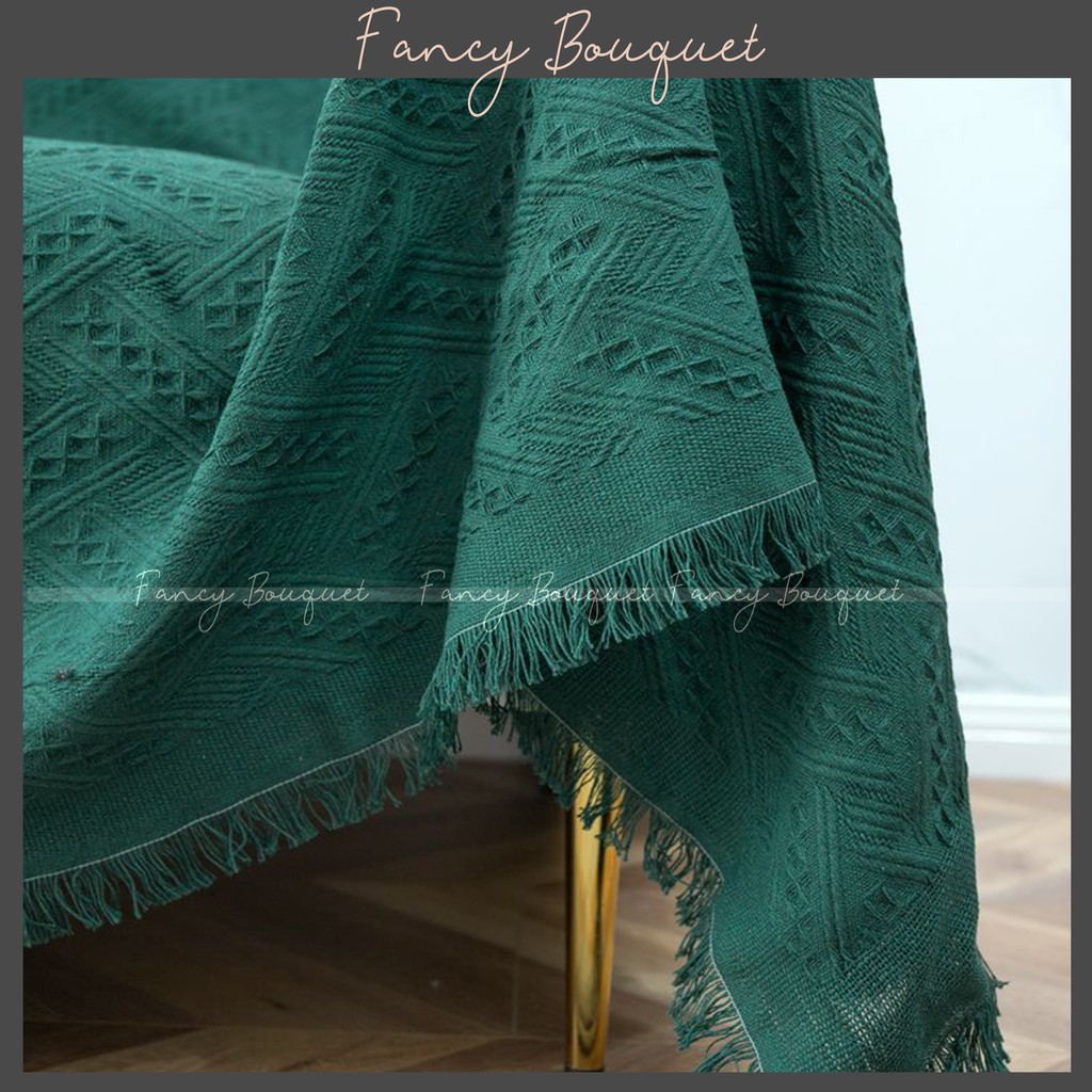 Thảm phủ sofa Cotton thêu nổi ❤️FREESHIP❤️ Khăn sofa cao cấp , phong cách Bắc Âu - Xanh Ngọc Lục Bảo