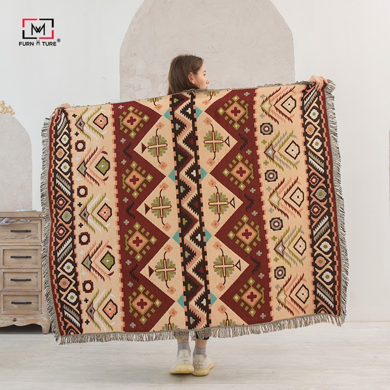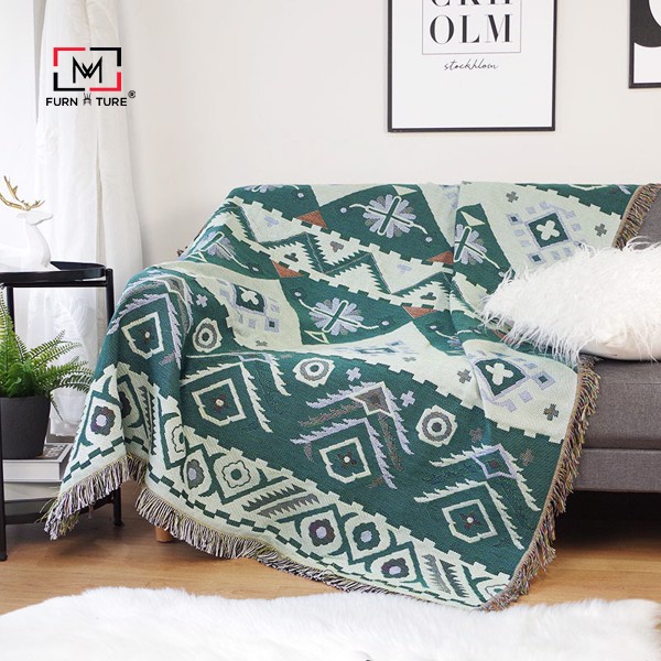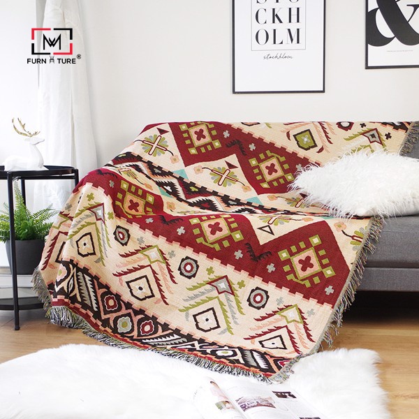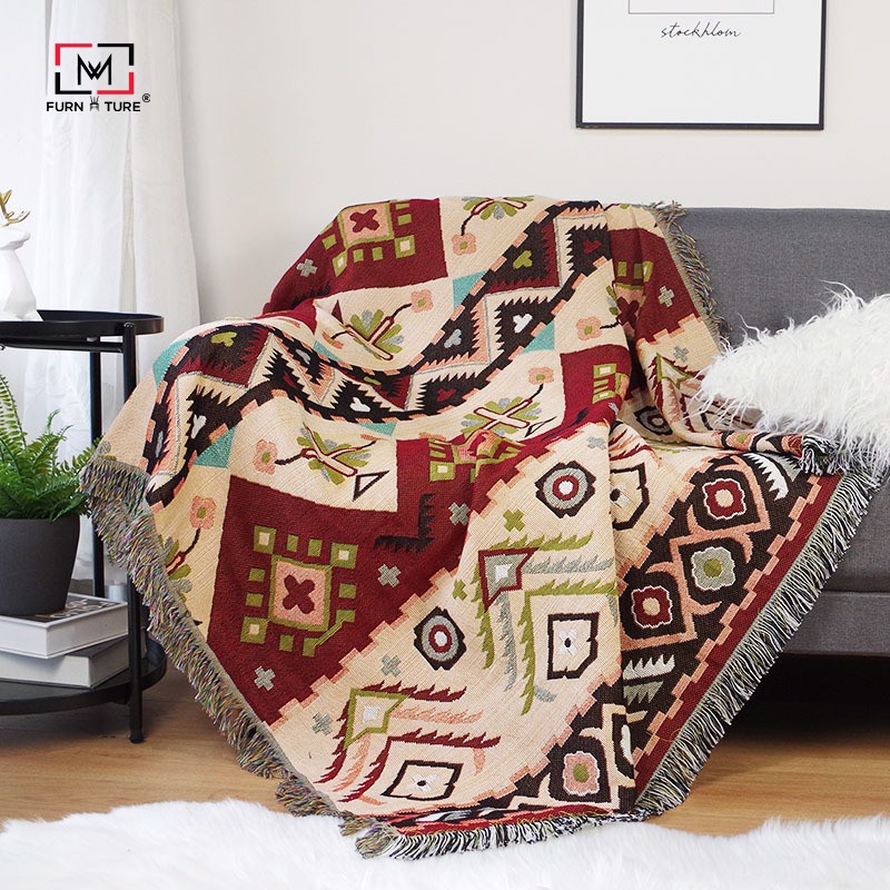 những họa tiết đối xứng đặc trưng của phong cách Boho. Tất cả tạo nên một chiếc Chăn Phủ Sofa hoàn hảo cho