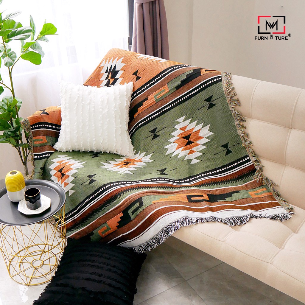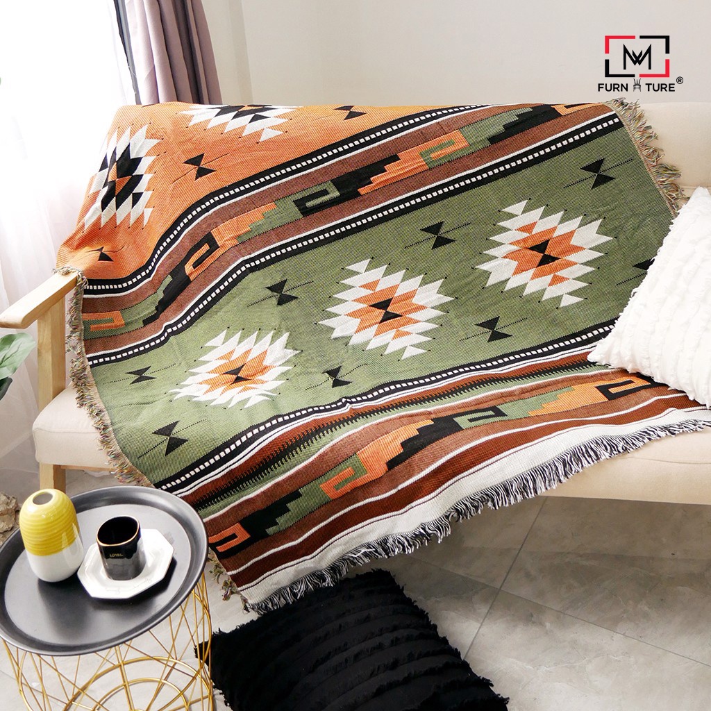 Thảm phủ sofa trang trí homestay họa tiết thổ cẩm sang trọng thương hiệu MW FURNITURE