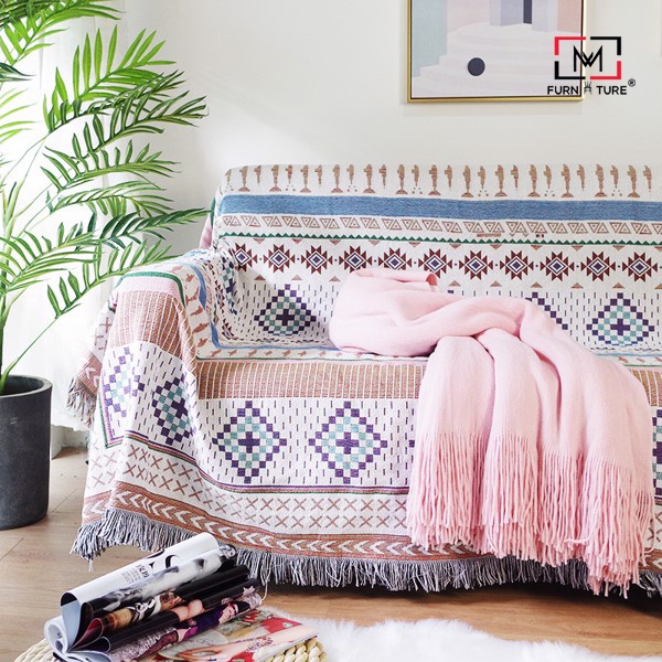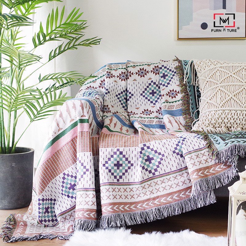 Thảm Phủ Sofa Trang Trí Homestay Họa Tiết Thổ Cẩm Sang Trọng được sử dụng làm thảm phủ sofa, thảm trải sàn, thảm bàn, thảm giường, chăn mỏng... với tác dụng trang trí, bảo vệ sofa, bàn ghế, giường khỏi bụi bẩn... phù hợp với mọi không gian, phong cách thiết kế, xu hướng decor và phụ kiện trang trí... tạo nên vẻ đẹp sang trọng, quý phái cho không gian.