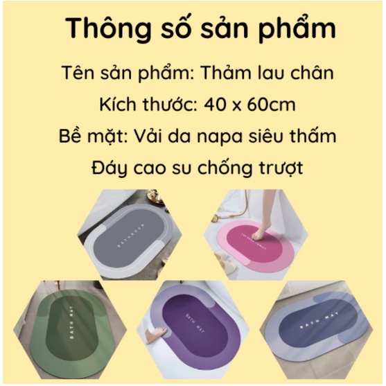 Thảm lau chân nhà tắm siêu thấm hút kích thước 40x60cm, Tấm lót sàn nhà nhanh khô bùn tảo cát cao cấp