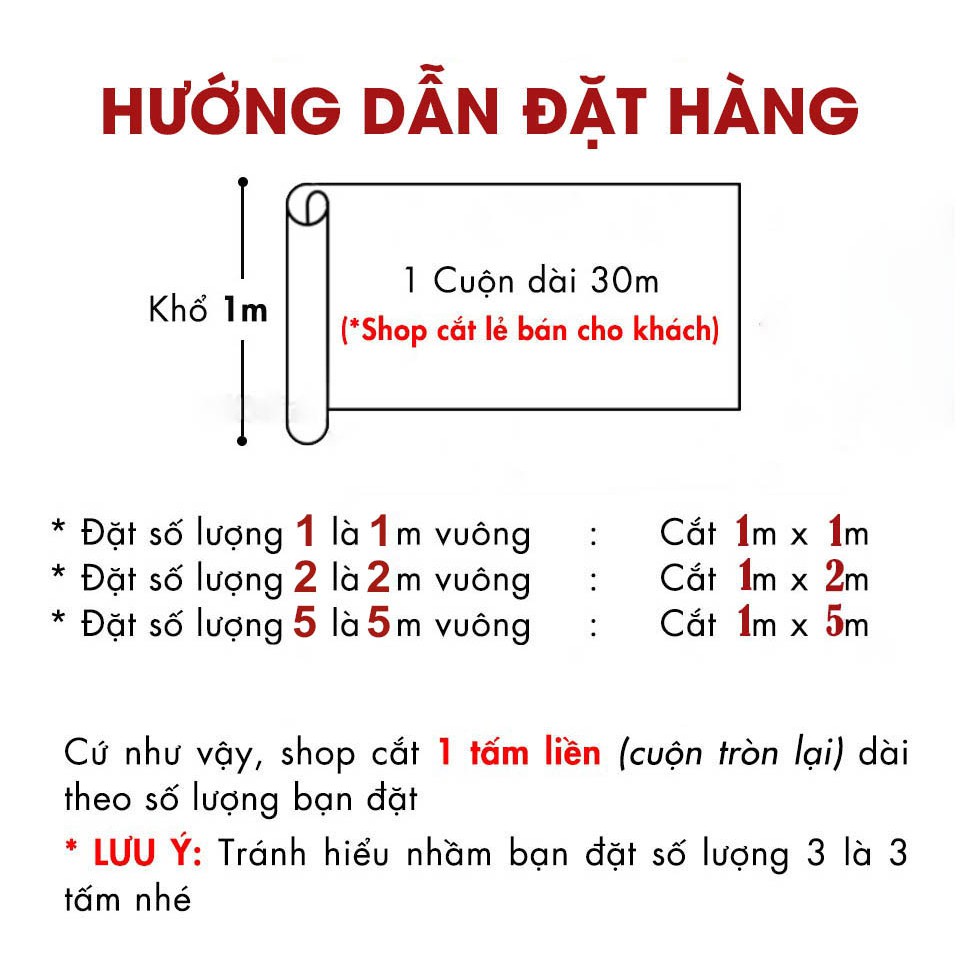 ✔️Cách đặt hàng: ví dụ nhà bạn rộng 4m dài 5m ( 4 x 5 ) = 20m2 bạn đặt số lượng 20 lần là đủ