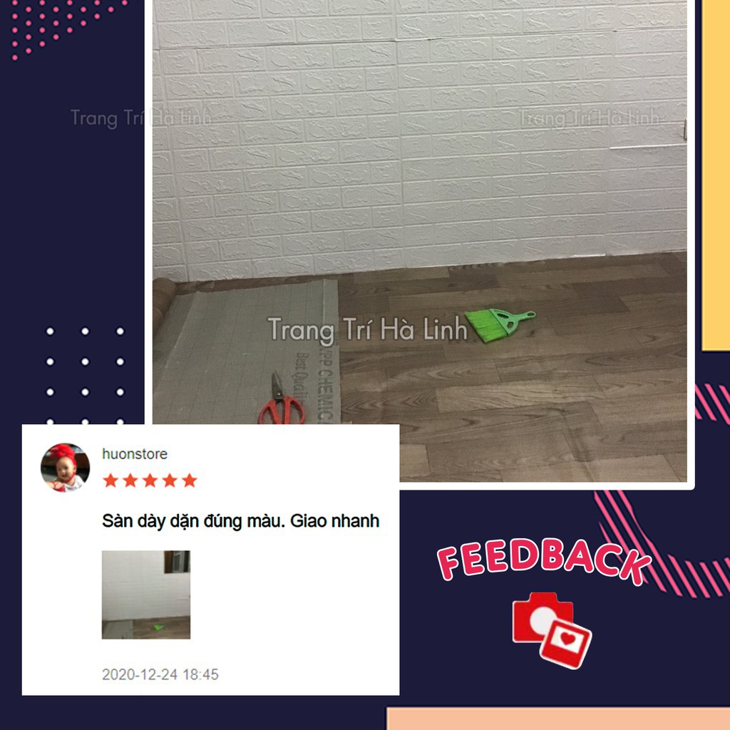2. Để phẳng đẹp và bền hơn thì bạn nên dùng keo sữa (shop có bán) để dán thảm, khi dán thì bạn nhờ miết thảm thật kĩ thì thảm sẽ phẳng và không có bọt khí ở giữa, trông không khác gì sàn gỗ cả mà giá thì rẻ