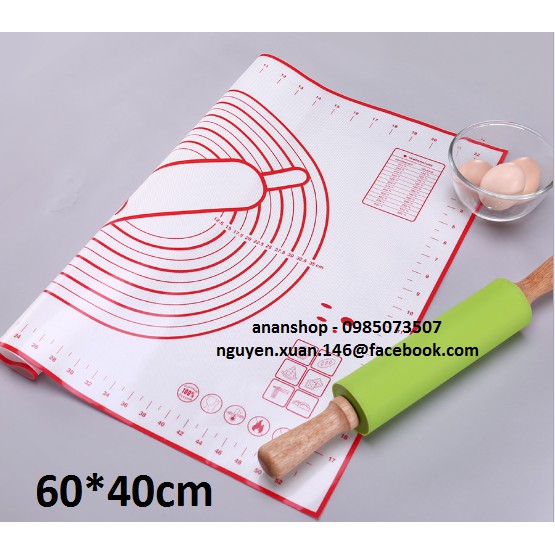 Thảm nhồi bột/ thảm nhào bột 60*40cmChất liệu: sợi thủy tinh phủ silicon