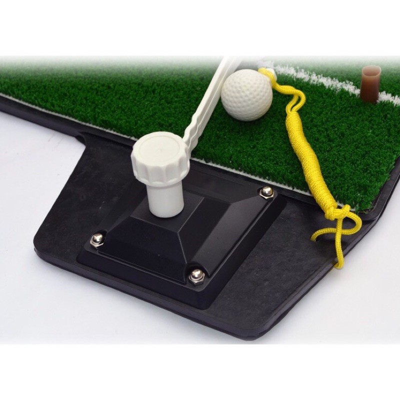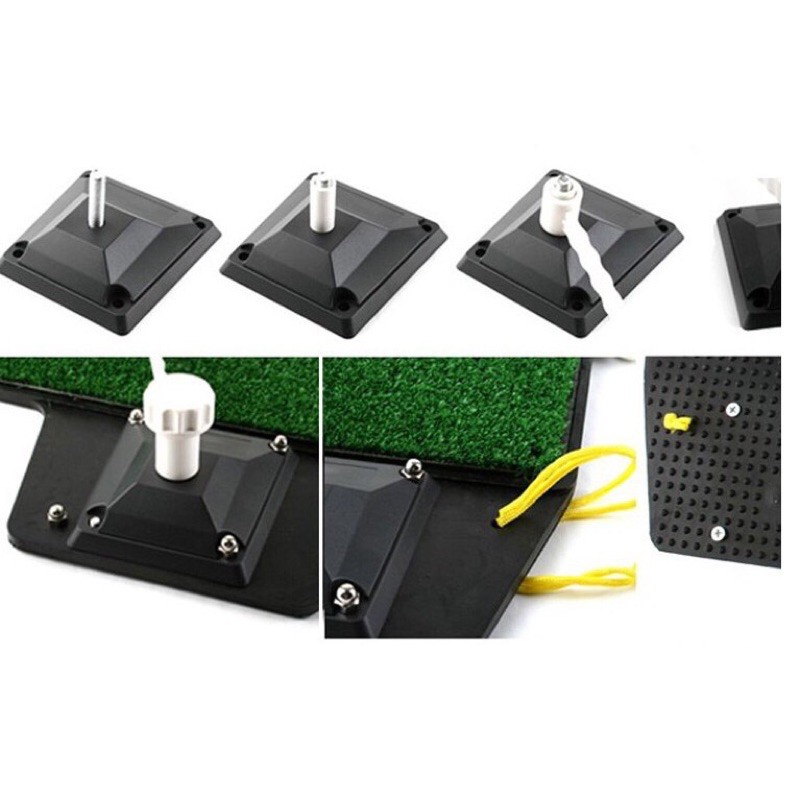 - Thảm swing cấu tạo gồm : Bề mặt thảm cỏ, lớp đế cao su đặc, trên bề mặt gắn kèm 1 thanh bóng nhựa xoay 360 độ, một quả bóng nhựa dây dài và một tee cao su gắn thảm.